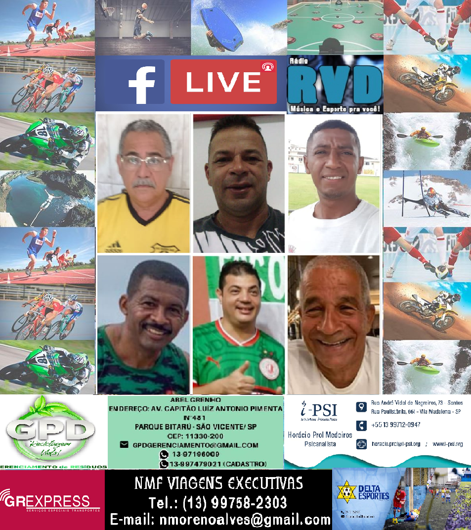 Segundona, a partir das 19h50(Horário de Brasília) é dia de SOU DA VÁRZEA na página da RÁDIO RVD no face. O bate bola será com Luis Carlos Hora, do Vai Quem Que; Cabelo, treinador da AA Ferroviária, de São Vicente-SP; Afonsinho, organizador da Copa Sespor 40 e 50então; Wilzon, ex-jogador; Marquinhos, Presidente do Juventude da Nova Cintra, de Santos-SP, além do professor Laudier com as Histórias da Várzea. Contamos com a sua audiência