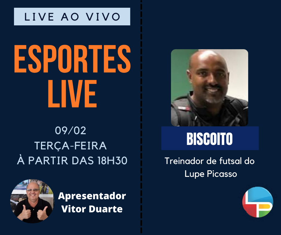 E no Programa Esportes Live desta terça feira, dia 9, teremos a presença do professor Carlos Nascimento, o Biscoito, treinador de Futsal do Colégio Lupe Picasso.