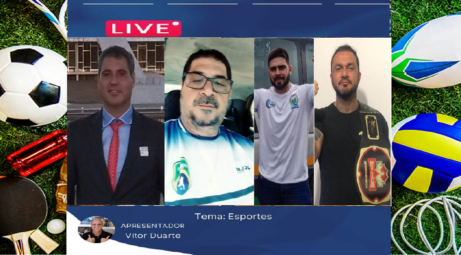Nesta quinta-feira, a partir das 13h30, teremos vários convidados no ESPORTES LIVE. O primeiro bate papo será com Marcelo Nogueira, Diretor Municipal de Eventos Esportivos de Batatais(SP). Na sequência o bate bola será com Dionisio Benante, da Liga de Futsal de Araçatuba e partir das 19 horas tem Luta de Braço com os atletas Rodrigo Stela e Rafael Santos. Contamos com a sua audiência.