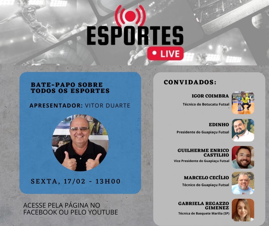 Nesta sexta feira no ESPORTES LIVE tem Futsal de Guapiaçu e Botucatu, além do basquete de Marilia(SP)