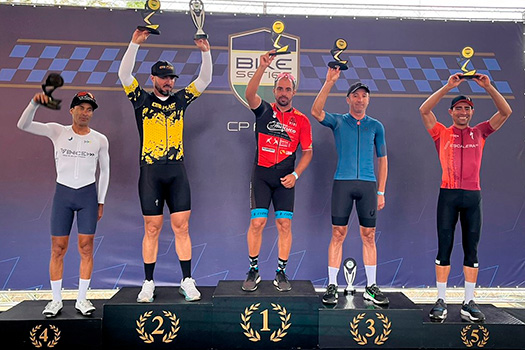 O ciclista de Praia Grande(SP), Vinícius Gonçalves, foi destaque na bike séries CP Ford realizada no último domingo (27), na cidade de Tatuí, interior de São Paulo. Ele foi o campeão na categoria pró 40-49 além de garantir a segunda colocação geral da corrida. A disputa reuniu cerca de 600 atletas de todo o estado de São Paulo mostrando um excelente nível de disputa que foi realizada nas categorias da Classe Pro, Sport, Elite, Duos Feminino, Masculino e Misto, E-bike, Desafio Pessoal e PCD em uma pista de 6,8 km de extensão e 65 metros de subidas acumuladas por volta. A competição faz parte da preparação de Vinícius Gonçalves para a disputa do seu objetivo principal que é o Campeonato Brasileiro Master que acontecerá em outubro, na cidade de Palmas, no Tocantins.