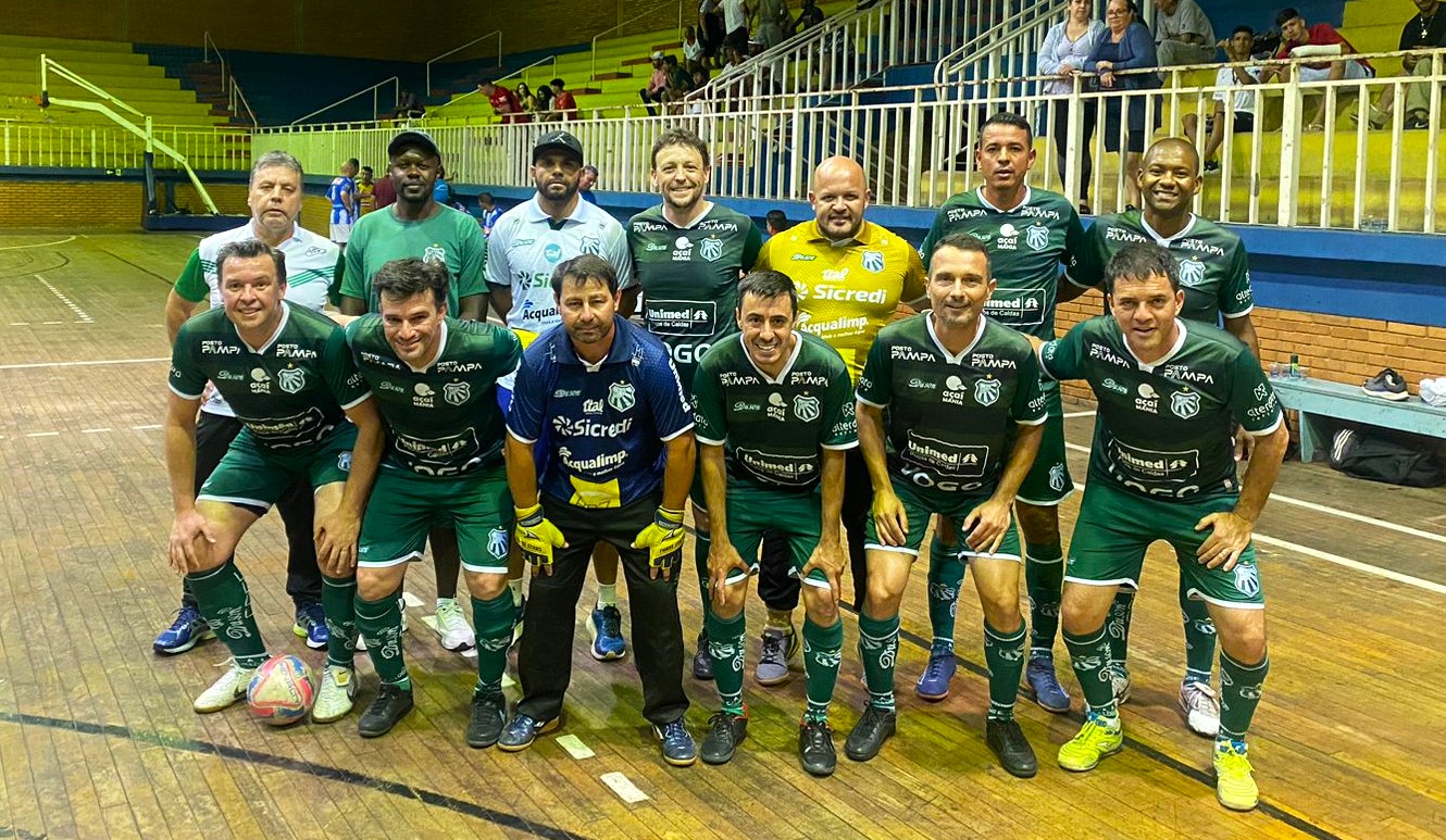 Aa equipe da Caldense entrou em quadra pela semifinal da Copa de Futsal 40+ para enfrentar o forte time do Social, no Ginásio Dr. Arthur de Mendonça Chaves. A Veterana conseguiu iniciar a partida tomando conta das ações. Abriu o marcador com gol de Juliano Jacaré e teve o controle do jogo até boa parte da segunda etapa da partida. Porém, em uma jogada de bola parada, a Caldense cedeu o empate para o adversário, que igualou o placar com gol marcado por Tony. A vaga na decisão da categoria foi decidida nas penalidades. O Social foi perfeito nas suas cobranças, e conseguiu levar a vitória por 3 a 1. Agora a AA Caldense entrará em quadra, na próxima sexta-feira (15), no Ginásio Miguel Zanetti, para a disputa do terceiro lugar, onde enfrentará o time Pé Vermelho de Águas da Prata-SP. Atuaram pela Caldense 40+: Carlos, Alessandro, Jimi, Rodrigo Boca, Daniel Lemos, Juliano Jacaré, Paulinho, Wilsinho, Buiú e Tuta. Técnico convidado: Léo Caxeta. Já o time 30+ da Caldense está vivo na competição e irá brigar pelo título na próxima segunda-feira (18), no Ginásio Dr. Arthur de Mendonça Chaves, contra o União Agropecuária.