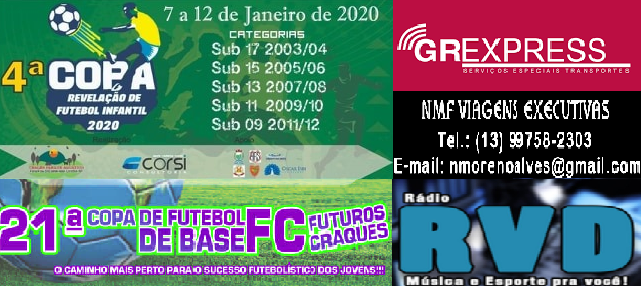 Você vai´acompanhar os jogos dos times sub 15 e 16 da Arena Projetos, de Mongaguá, nas Copas Revelação de Futebol Infantil e Futuros Craques pelo face da RÁDIO RVD. Basta acessar https://www.facebook.com/vitor.duarte.5817?ref=bookmarks e acompanhar AO VIVO os jogos, além do programa VD ESPORTES, a partir das 20 horas, direto do CT Oscar Inn, em Águas de Lindoia. Apoio: Arena Projetos. GR Express e NFM Viagens Executivas.