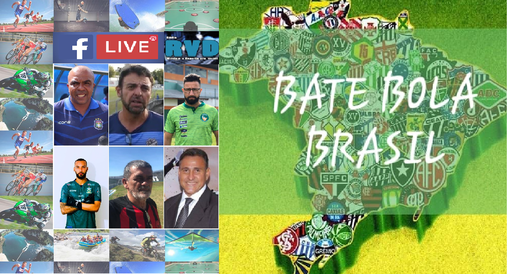 Nesta sexta feira, dia 05, a partir das 19h50, tem BBB - BATE BOLA BRASIL - na página da RÁDIO RVD no face. O bate bola sera com Anderson Lima, ex- jogador e hoje treinador de futebol; Alex Bruno, ex-jogador e hoje gerente de futebol do Camboriu FC( SC); Edmilson Pilz. treinador sub 17 do Santa Cruz( RS); Jorge Vieira( Parafina), diretor da Federação Pernambucana de Futebol; Junior Urubu, Presidente do IBIS( PE); e Luis Augusto goleiro do EC Santo André. Convidado especial Paulo Jr, supervisor de futebol. Contamos com a sua audiência.