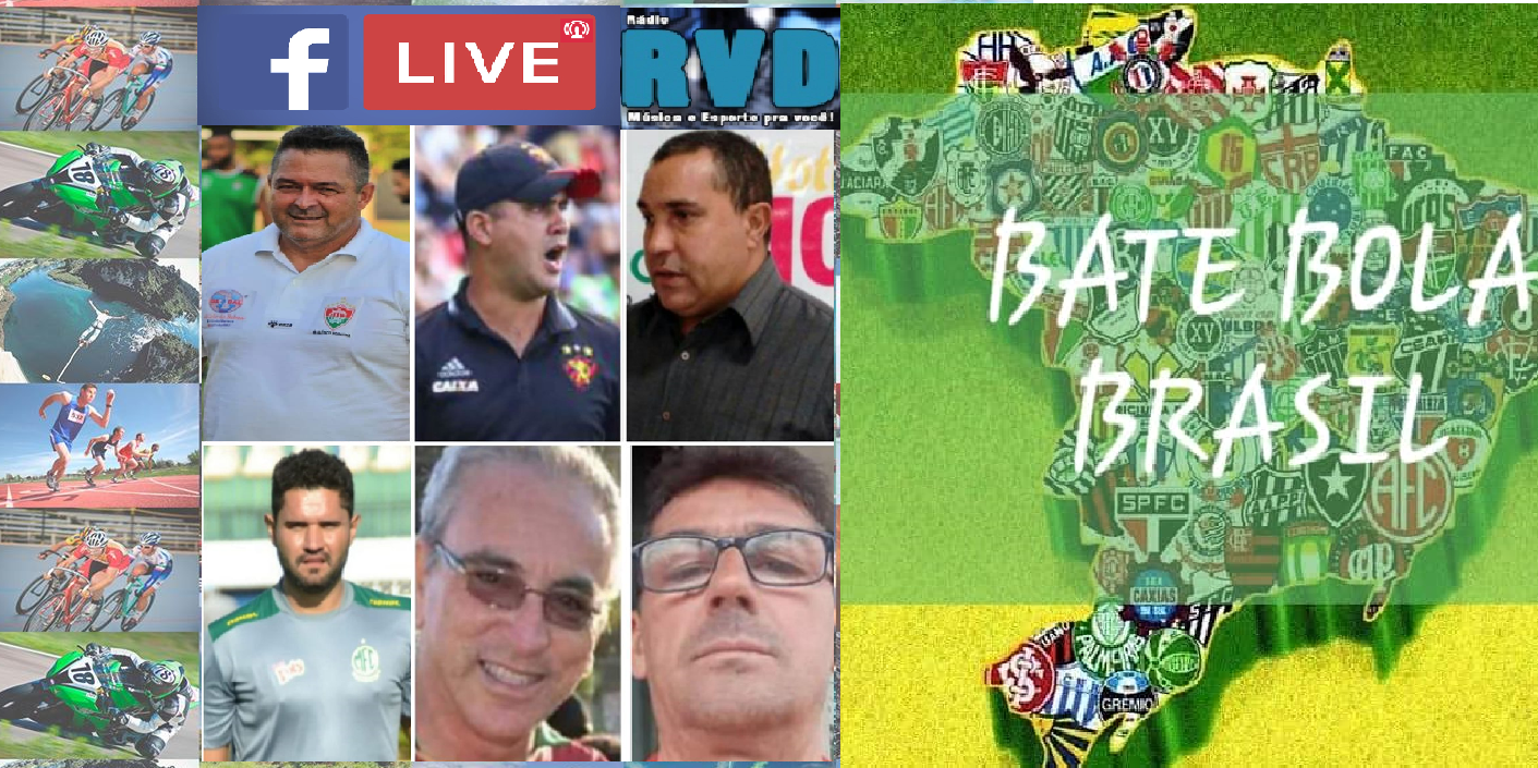 Nesta sexta-feira, dia 26, a partir das 19h50, tem o BBB - BATE BOLA BRASIL - na página da RÁDIO RVD no face. No bate papo teremos Danilo Souza, preparador de goleiros; Da Silva, Presidente do Sport Club Jaragua(SC); Marcos Martiniano, supervisor de futebol; Suedy Clayton, treinador sub 17 do Sport Recife; Lelo, treinador do Jabaquara AC; Marcos Bruno, treinador de futebol. e participação especial de Paulo Jr. Supervisor de Futebol. Contamos com a sua audiência.