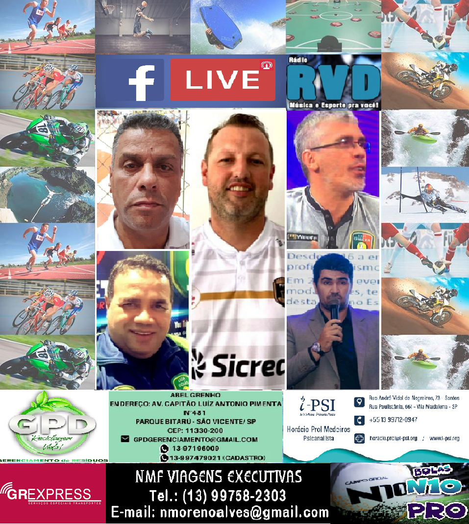 Nesta terça-feira, dia 14, a partir das 19h50, tem ESPORTES LIVE FUTSAL na página da RÁDIO RVD no face. O bate papo será com LAÉRCIO GRAÇA, Presidente da Associação Brasileira de Ligas de Futsal; NELSON BAVIER, Presidente da Liga Gaúcha de Futsal; WALDEY SILVER, Presidente da Liga Goiás de Futsal; CRIS JACLANI, Presidente da Liga Paraná de Futsal; e MARCELO NASCIMENTO(MARCELÃO), Presidente da Liga de Futsal da Paraíba. Contamos com a sua audiência.