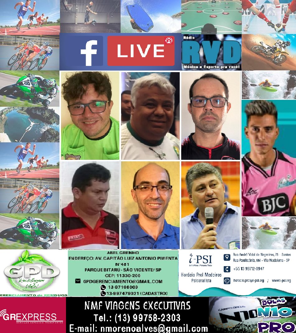 Nesta terça-feira, dia 21, a partir das 19h50, tem ESPORTES LIVE FUTSAL na pagina da RÁDIO RVD no face. Presenças de Jorge Roberto, Presidente da Liga Catarinense de Futsal; Willian Cleber, Presidente da Liga Candanga de Futsal(DF); André Fabiano, Presidente da Liga Mineira de Futsal; Augusto César, Presidente da Liga Amapá de Futsal; Jeferson Grolli, Presidente da Liga Matogrossense de Futsal; Guilherme Borges, Presidente da Liga Piauiense de Futsal, além do goleiro Paulo Vitor, hoje no Indoor Soccer nos Estados Unidos, Contamos com a sua audiência.