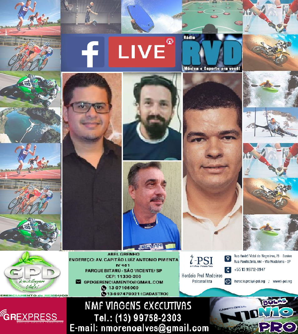 Nesta terça-feira, dia 28, a partir das 19h50, tem bate BOLA PESADA na página da RÁDIO RVD no face, É o ESPORTES LIVE FUTSAL. Presenças de Bruno Soares, Presidente da Liga de Futsal do Ceará; Sérgio Luis, Presidente da Liga Desportiva de Ribeirão Preto; Kelvin Aguiar, Presidente da Liga Sul Matogrossense de Futsal; e Franklin Silva, Presidente da Liga Pernambucana de Futsal. Contamos com a sua audiência.