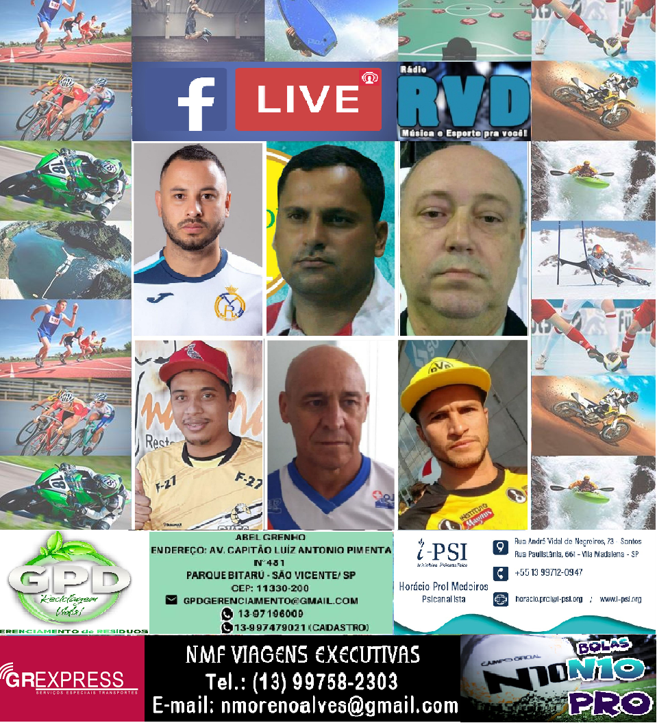 Nesta terça-feira, dia 4, a partir fas 19h40, na página da RÁDIO RVD no face tem ESPORTES LIVE FUTSAL com Piter, jogador do Real Madruga(SP); Luciano, treinador do Alfenas Futsal(MG); Walter Assunção, Presidente do Hornets Futsal, de Sorriso(MT); Claudiney Oscar, treinador do Gol de Placa Brazilian(DF); Willians Cássio, Presidente da Liga Alagoana de Futsal; e Luiz Ferro, Presidente da FEFUSAL. Contamos com a sua audiência.