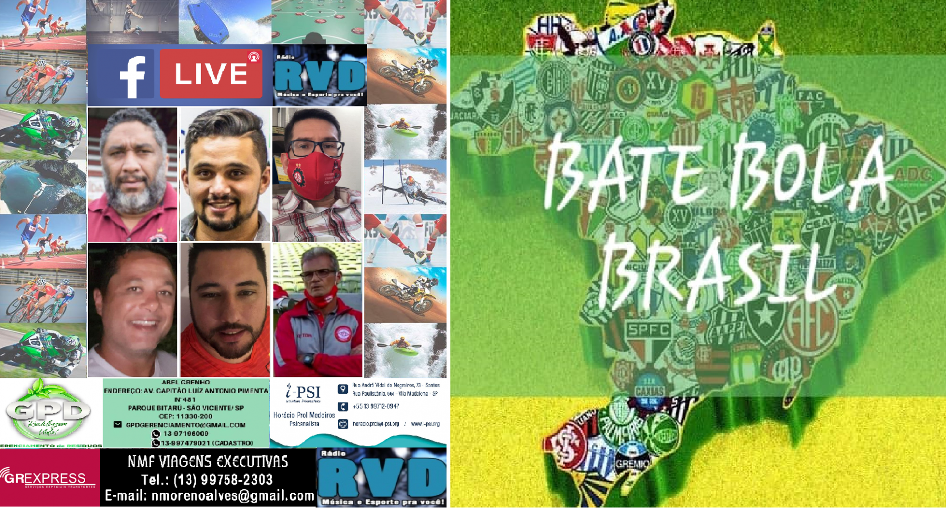 Nesta sexta-feira, dia 14, a partir das 19h50, tem o BBB - BATE BOLA BRASIL - na página da RÁDIO RVD no face. O bate bola será com Renê Marques, Diretor de Futebol do Juventus, de Jaraguá(SC); Giovani Nunes, Superintendente Geral do Clube Atlético Herman Aichiner(SC); Andre Luis Cardoso, Presidente do EC Atlético Batistense(SC); Israel Rocha, Presidente do Próspera(SC); Jonas Guzzato, Presidente do Concordia(SC); e Eugênio Souza, treinador do CA Tombense(MG) e Paulo Jr, Supervisor de Futebol. Contamos com a sua audiência.