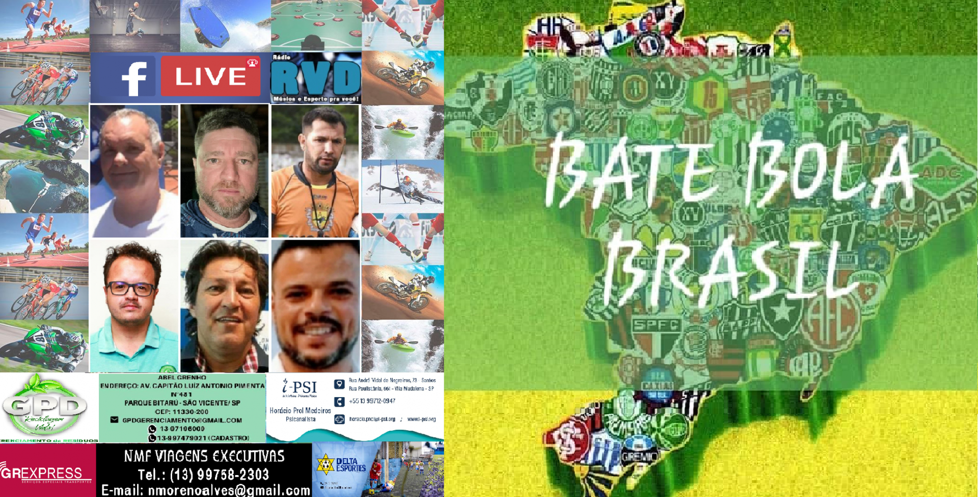 Sexta-feira é dia de BBB - BATE BOLA BRASIL - na página da RÁDIO RVD no face. Bate bola com Nei Minks, coordenador e supervisor da Chapecoense(SC); Edenilson Pateta, diretor do União Bandeirante(PR); Fernando Fernandes, ex-preparador físico do Santos FC; Galdino Machado, ex-treinador do time feminino do Botafogo(SP) e hoje coordenador de esportes do Clube Recreativa(Recra); Paulo Jr, supervisor de futebol; e Zé Marcos, treinador do Galvez(AC). Contamos com a sua audiência.