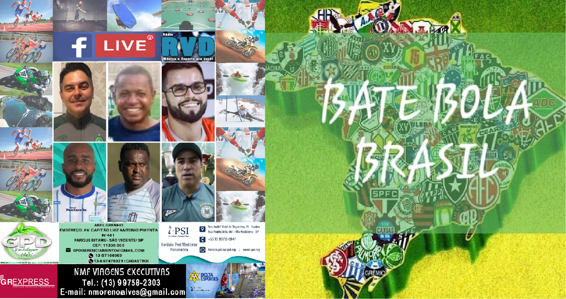 Sexta-feira, dia 2, é dia de BBB - BATE BOLA BRASIL - a partir das 19h50 na página da RÁDIO RVD no face. O bate bola será com Yan Razera, treinador do sub 15 da Chapecoense(SC); Jorge Luiz(Buiu), auxiliar técnico do Maringá FC(PR); Fabinho Love, jogador do Prudentópolis(PR); Pael, auxiliar técnico do Mamoré(MG); Luan Carlos, treinador do Goianésai(GO); e Mauricinho, treinador do Valeriodoce(MG). Contamos com a sua audiência.