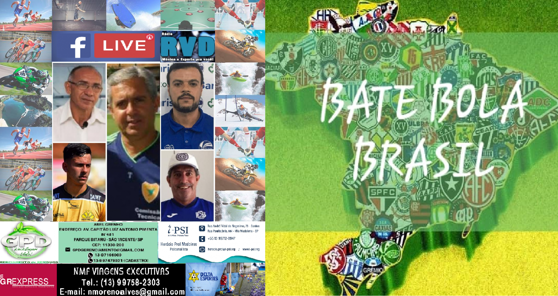 Sexta-feira é dia de BBB - BATE BOLA BRASIL, A partir das 19h50 na página da RÁDIO RVD no face vamos bater um papo com Mirandinha, ex-jogador do Palmeiras e hoje treinador de futebol; Juarez Sobeiro, coordenador e treinador do time profissional do Brasilis(SP); Paulo Jr, supervisor das categorias de base até sub 14 do São José(RS); Dionisio da Conceição , treinador de futebol; e Leonardo Gonçalves, jogador do Criciuma(SC). Contamos com a sua audiência.