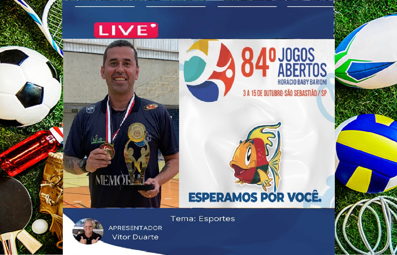 Nesta segunda-feira, dia 3, a partir das 14h30, tem ESPORTES LIVE ESPECIAL JOGOS ABERTOS DO INTERIOR 2022 na página da RÁDIO RVD. O bate papo será com Daniel Leque, treinador do time de basquete masculino adulto do Memorial/Santos/FUPES/Blue Med. Contamos com a sua audiência.