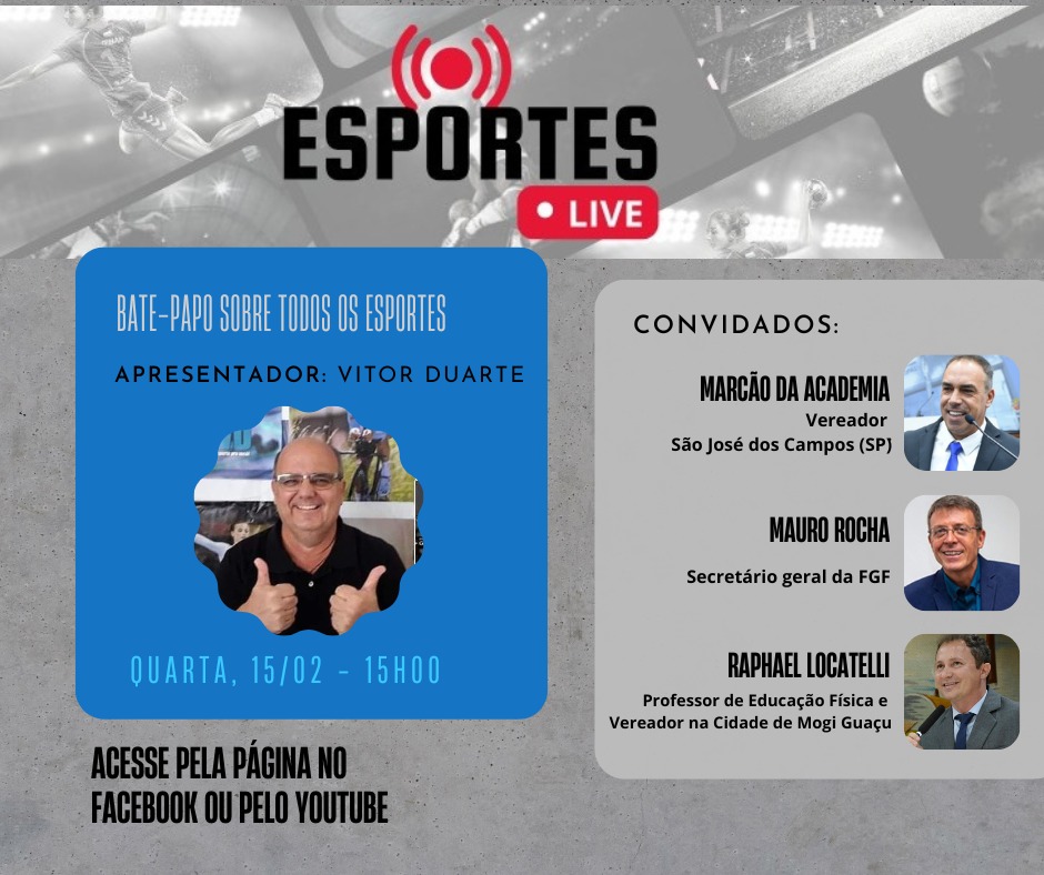 Nesta quarta-feira, dia 15, a partir das 15 horas, tem ESPORTES LIVE na página da RÁDIO RVD no face e pelo Canal da RÁDIO RVD WEB no You Tube.