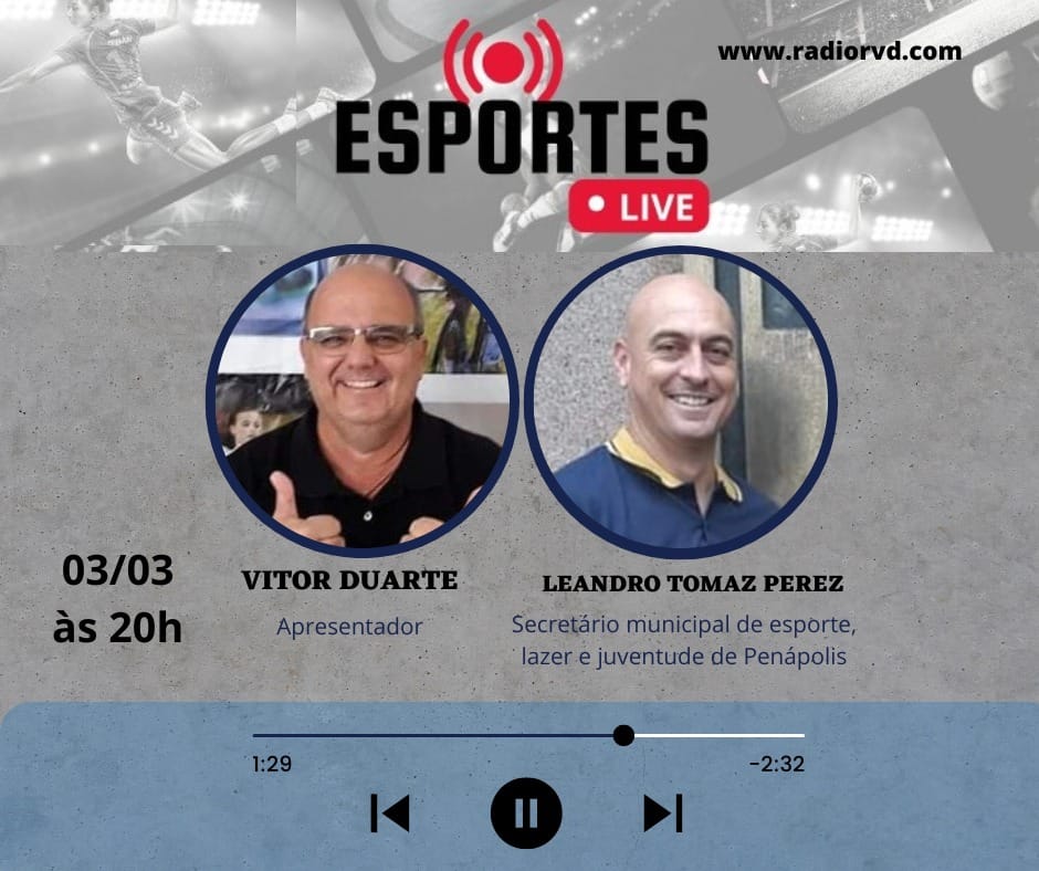 Leandro Perez, Secretário de Esportes de Penapolis(SP), é o convidado desta sexta-feira no ESPORTES LIVE na RÁDIO RVD