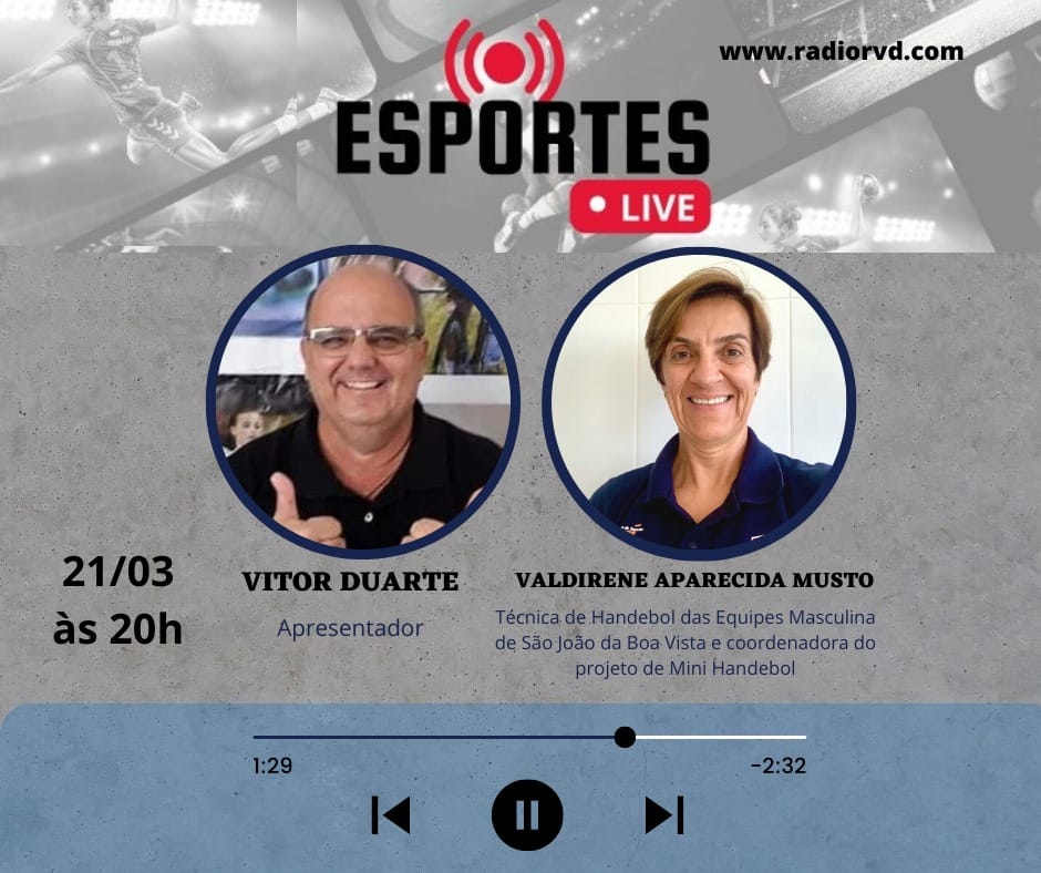 ESPORTES LIVE na RÁDIO RVD nesta terça feira, dia 21, a partir das 20 horas.