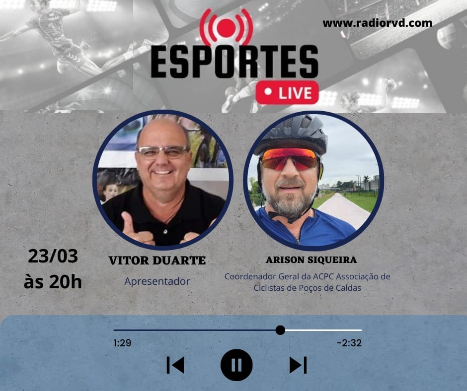 Arison Siqueira, da Associação de Ciclismo de Poços de Caldas(MG) nesta quinta no ESPORTES LIVE na RÁDIO RVD