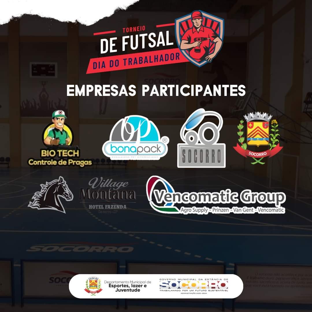 Com a participação de seis empresas da cidade de Socorro(SP), o Departamento de Esportes, Lazer e Juventude da Prefeitura de Socorro realizará neste final-de-semana o Campeonato de Futsal “Dia do Trabalhador”, em alusão ao Dia Internacional dos Trabalhadores. A competição terá início nesta sexta-feira (28), a partir das 19h30, no Ginásio de Esportes “Nego Bonetti”. A final acontecerá no domingo (30), às 18h30. Estarão participando as empresas Biotech – Controle de Pragas, Bonapack, Socorro Bebidas, Prefeitura de Socorro, Village Montana e Vencomatic Group.