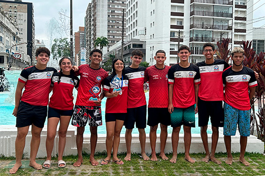 Três medalhas de ouro e outras duas de prata, esse é o saldo positivo da participação da equipe de Praia Grande de natação na 9ª Prova Aquática Cidade de Santos. A competição, que ocorreu no sábado (27), festejou os 478 anos do município santista e reuniu cerca de 400 atletas de várias idades. Os três campeões do Time Praia Grande na disputa foram: Ana Beatriz (juvenil), Miguel Arcanjo (juvenil) e Italo Bressane (geral). As duas medalhas de prata foram conquistadas pelos seguintes nadadores: Daniel Rezende Fidelis (geral) e Pablo Hendrik da Silva Sales (Júnior). Mais resultados – Outros atletas de Praia Grande também alcançaram resultados de destaque na prova. Alicia Natasha Macedo ficou em quarto lugar na categoria júnior. Guilherme Lopes Saavedra, também na classe júnior, e Carlos Alexandre Nascimento Barrada, na sênior, terminaram na quinta colocação.