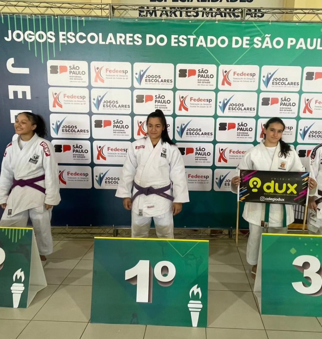 A judoca Isadora Caroline Neri, que representando o Colégio Dux Pedreira, conquistou a medalha de bronze na categoria Sub-15 na primeira fase dos Jogos Escolares do Estado de São Paulo. A competição aconteceu em Hortolândia(SP). Isadora pertence a Associação Estadual de Judô Acácio Rodrigo (AEJAR) A atleta esteve acompanhada pelos Senseis Franciele Terenzi, Carlos Pereira e Rodrigo Oliveira, que agradecem o apoio da Prefeitura Municipal de Pedreira e aos parceiros da AEJAR.