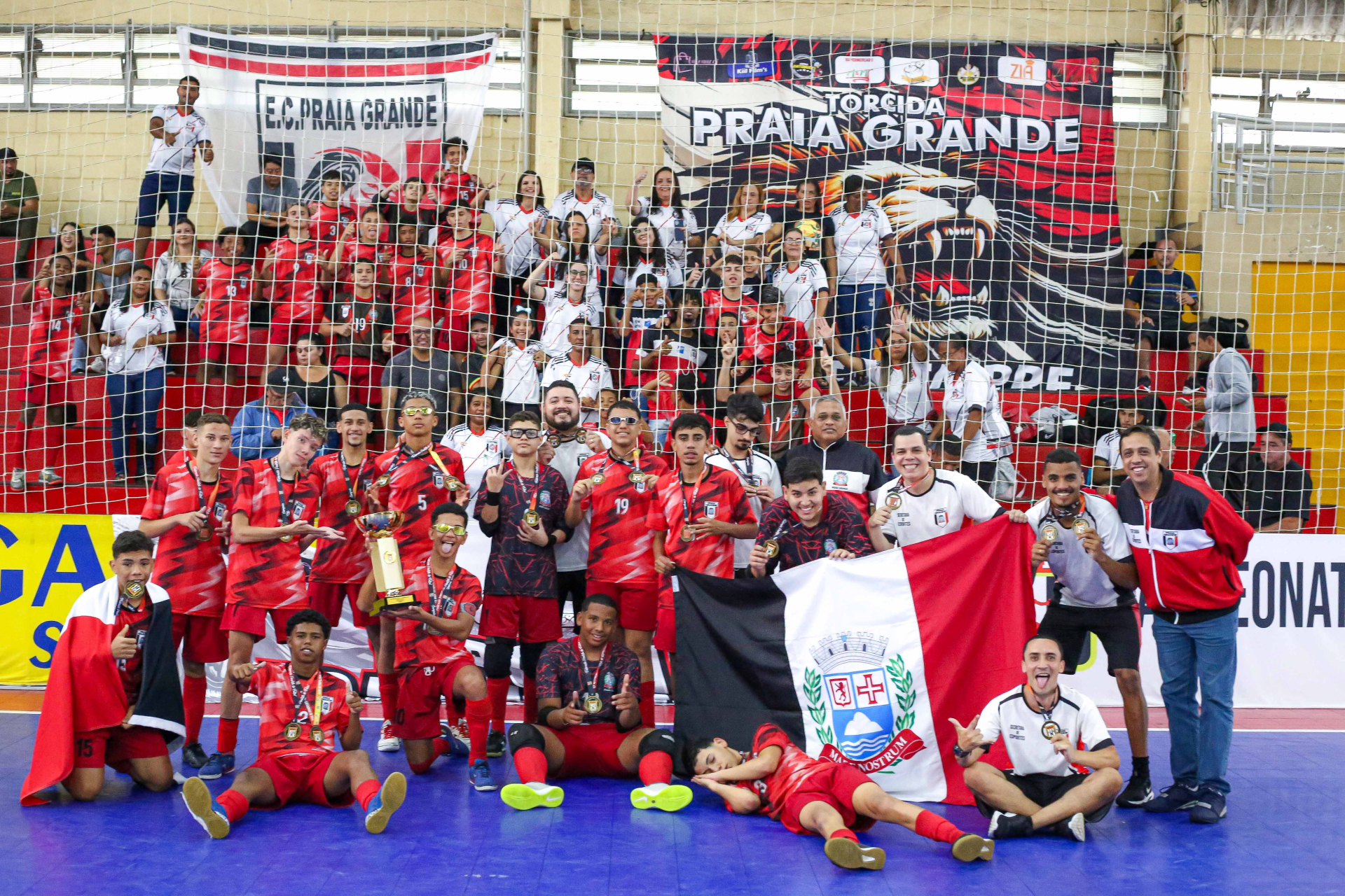 As equipes de futsal sub 14 e 16 de Praia Grande(SP) conquistaram o título do Campeonato Estadual de Futsal da Série A 2 temporada 2024. O torneio é organizado pela Federação Paulista. Na categoria sub 14, após empate em 1 a 1 no tempo normal com Suzano, o time praiagrandense venceu na prorrogação por 1 a 0. Já o time sub 16 derrotou a equipe do Colorado de Caieiras por 3 a 1. Os jogos aconteceram no Ginásio Presidente Ciro II, na Capital.
