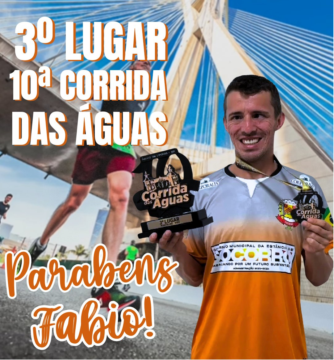O atleta socorrense Fabio Henrique Muniz Brolezi termino em 3 º lugar na prova de 10 km da 10ª edição da Corrida das Águas, realizada no último domingo, dia 18, em Águas de Lindóia, São Paulo. Fabio integra o projeto “Em Busca de Um Atleta Olímpico”, iniciativa da Prefeitura de Socorro para o desenvolvimento e suporte de talentos esportivos locais.